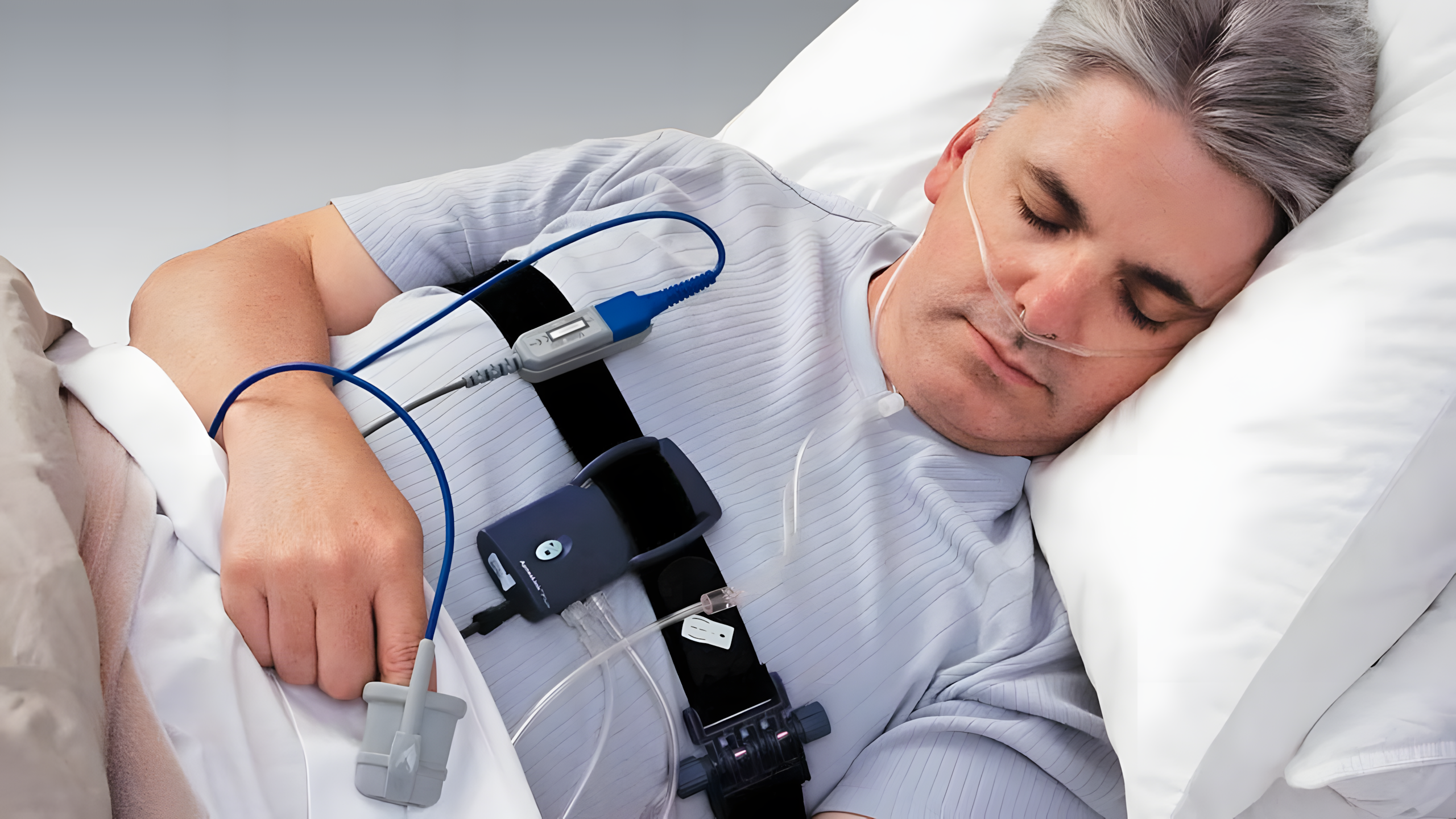 Exame usado para diagnosticar distúrbios do sono, monitorando diversas funções corporais durante o sono.